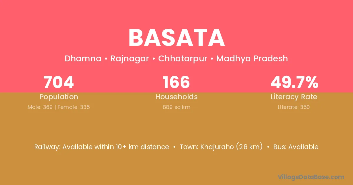 Chhatarpur (14 km) is the nearest town to Basata village for major economic activities and is located approximately 14 km away.