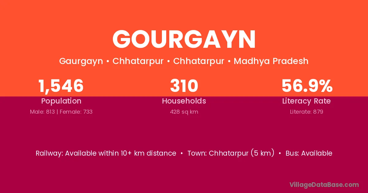 Chhatarpur (5 km) is the nearest town to Gourgayn village for major economic activities and is located approximately 5 km away.