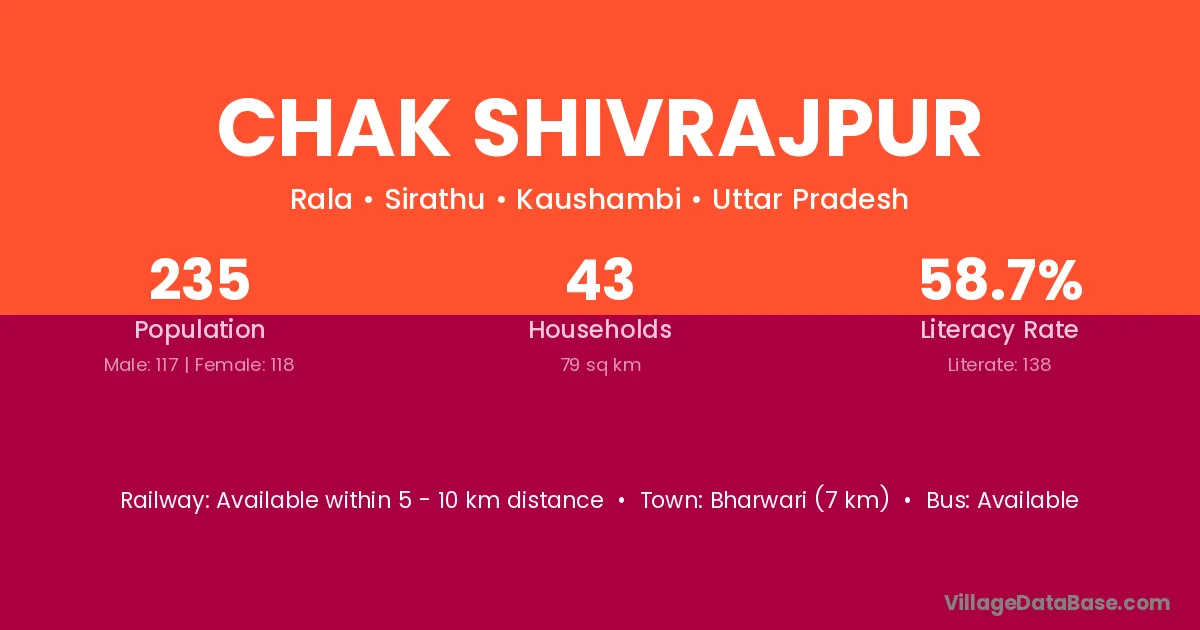 Chandla (30 km) is the nearest town to Chak Shivrajpur village for major economic activities and is located approximately 30 km away.