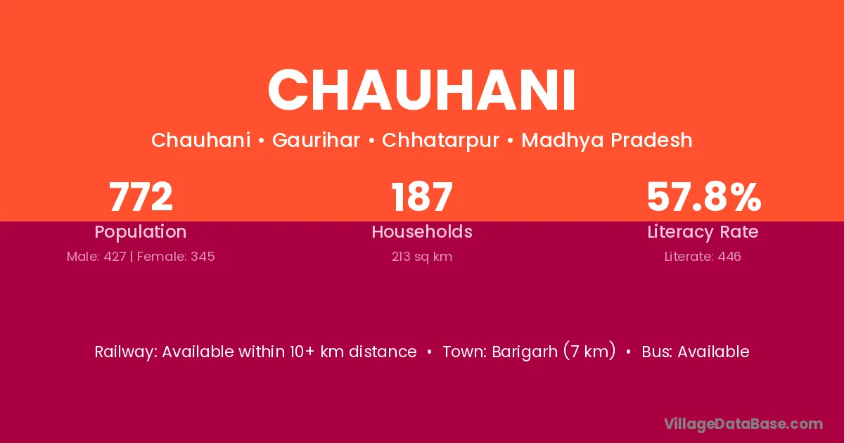Chauhani village has a total population of 772 people, of which 427 are males and 345 are females.