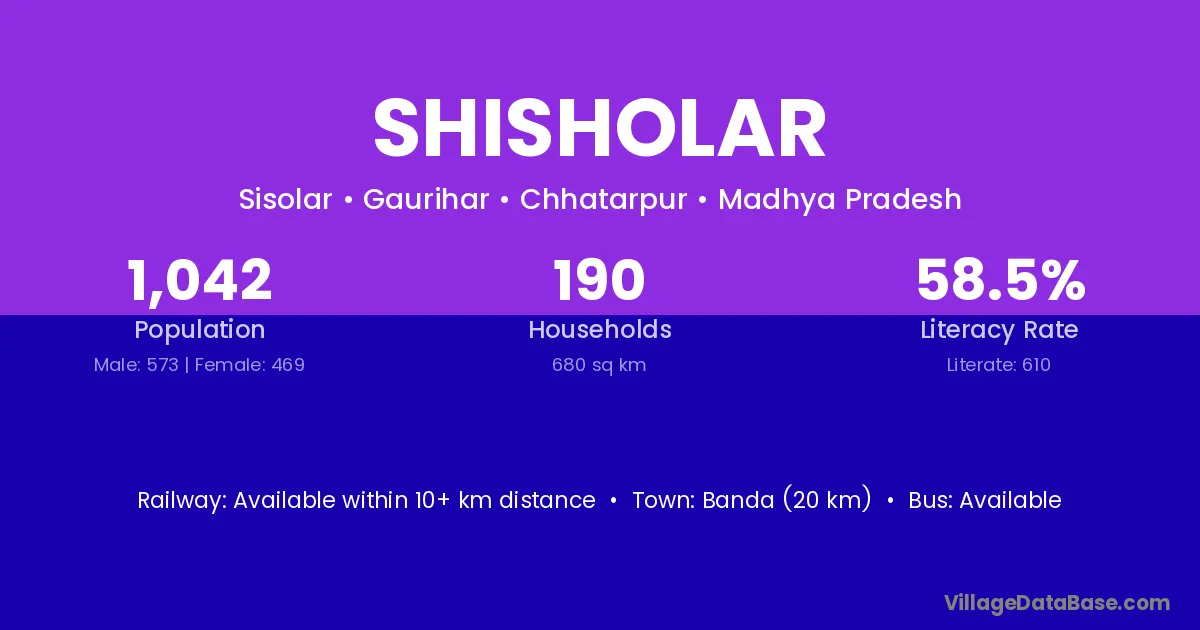 Banda (20 km) is the nearest town to Shisholar village for major economic activities and is located approximately 20 km away.