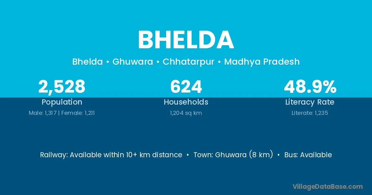 Ghuwara (8 km) is the nearest town to Bhelda village for major economic activities and is located approximately 8 km away.