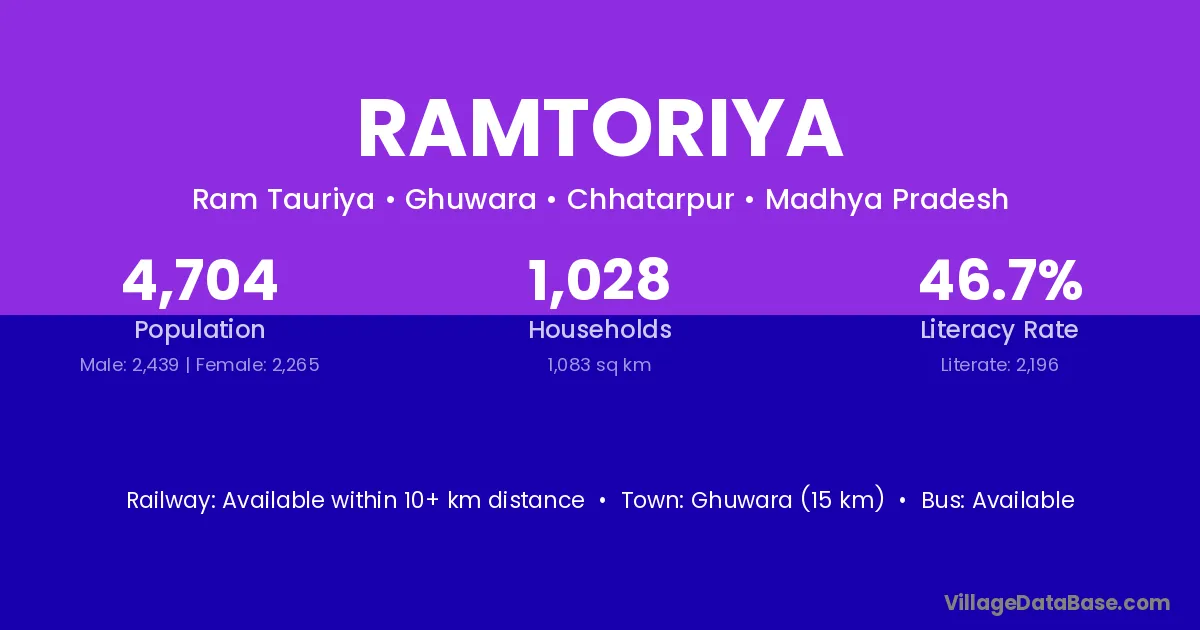 Ghuwara (15 km) is the nearest town to Ramtoriya village for major economic activities and is located approximately 15 km away.