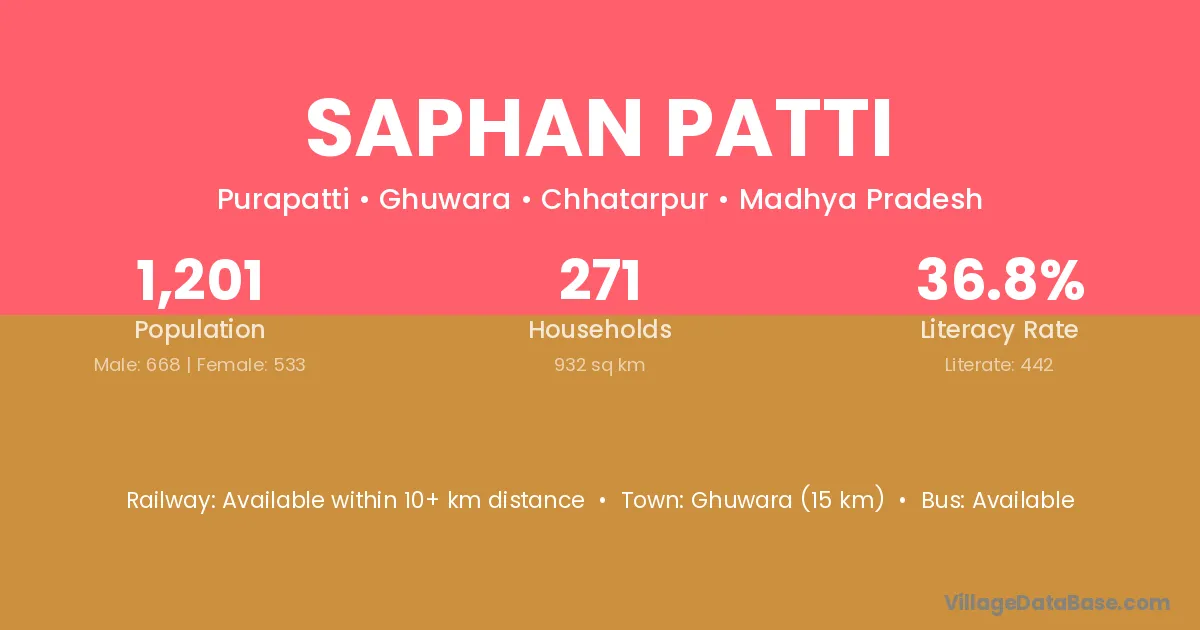 Ghuwara (15 km) is the nearest town to Saphan Patti village for major economic activities and is located approximately 15 km away.