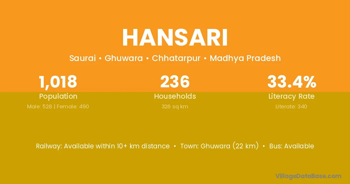 Laundi (10 km) is the nearest town to Hansari village for major economic activities and is located approximately 10 km away.