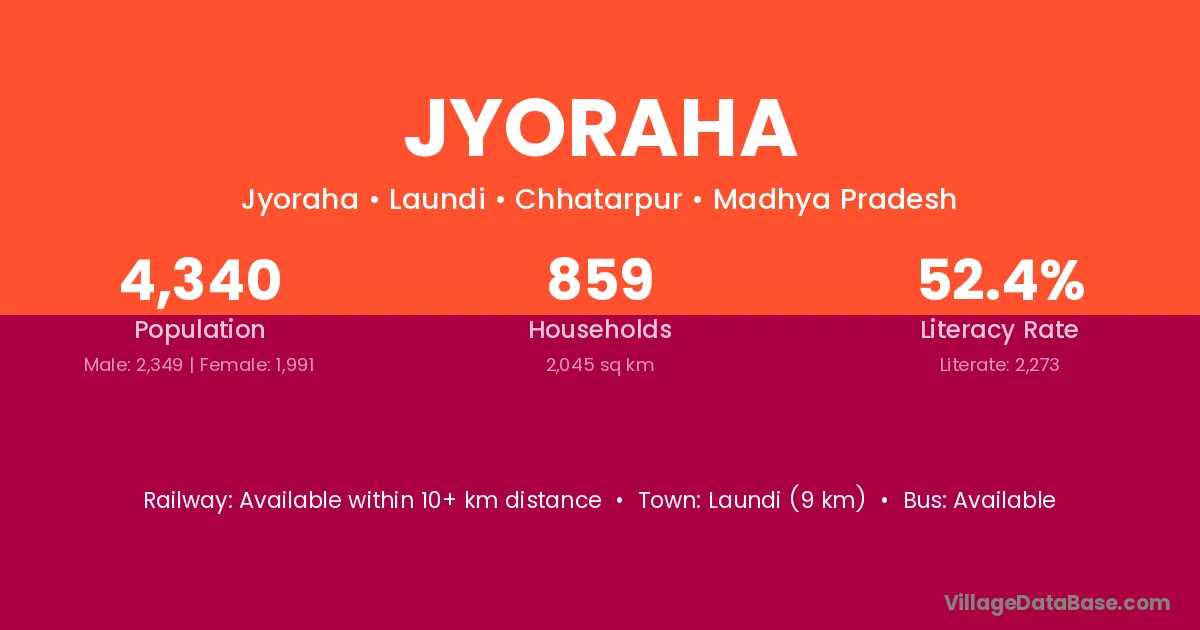 There are approximately 859 households in Jyoraha village.