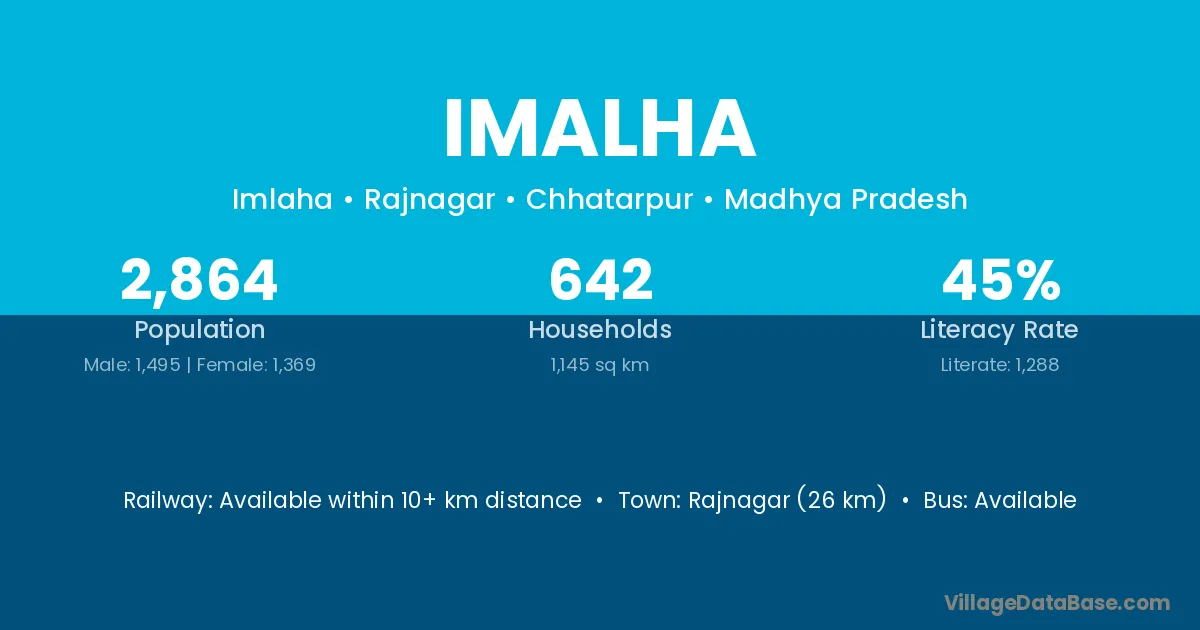 Imalha village has a total population of 2,864 people, of which 1,495 are males and 1,369 are females.