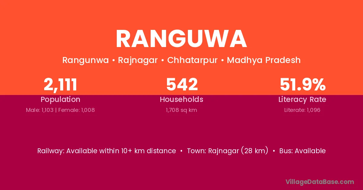 Ranguwa village has a total population of 2,111 people, of which 1,103 are males and 1,008 are females.