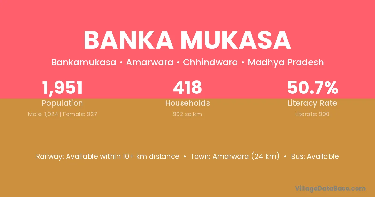 Amarwara (24 km) is the nearest town to Banka Mukasa village for major economic activities and is located approximately 24 km away.