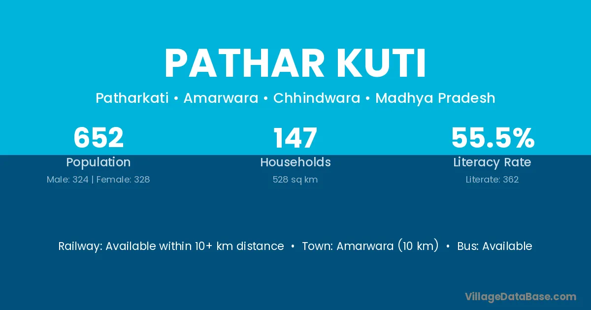 Amarwara (10 km) is the nearest town to Pathar Kuti village for major economic activities and is located approximately 10 km away.