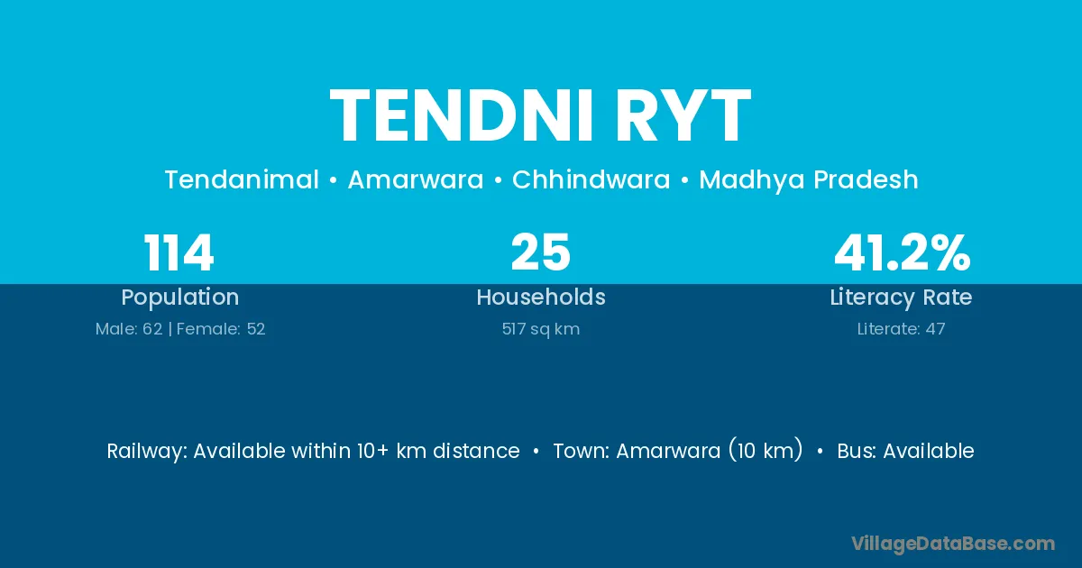 Amarwara (10 km) is the nearest town to Tendni Ryt village for major economic activities and is located approximately 10 km away.