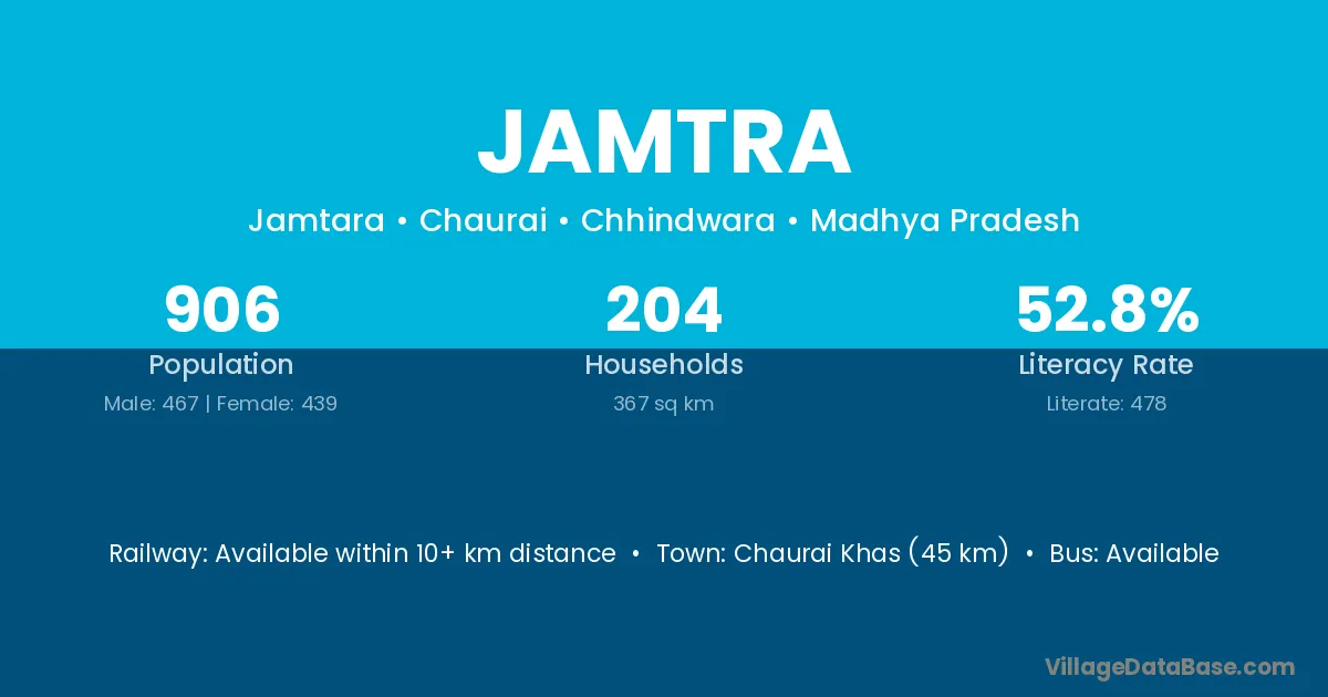 Chaurai Khas (45 km) is the nearest town to Jamtra village for major economic activities and is located approximately 45 km away.