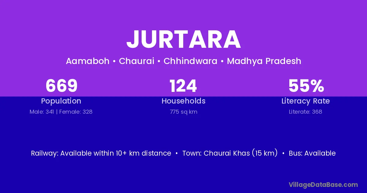 Jurtara village has a total population of 669 people, of which 341 are males and 328 are females.