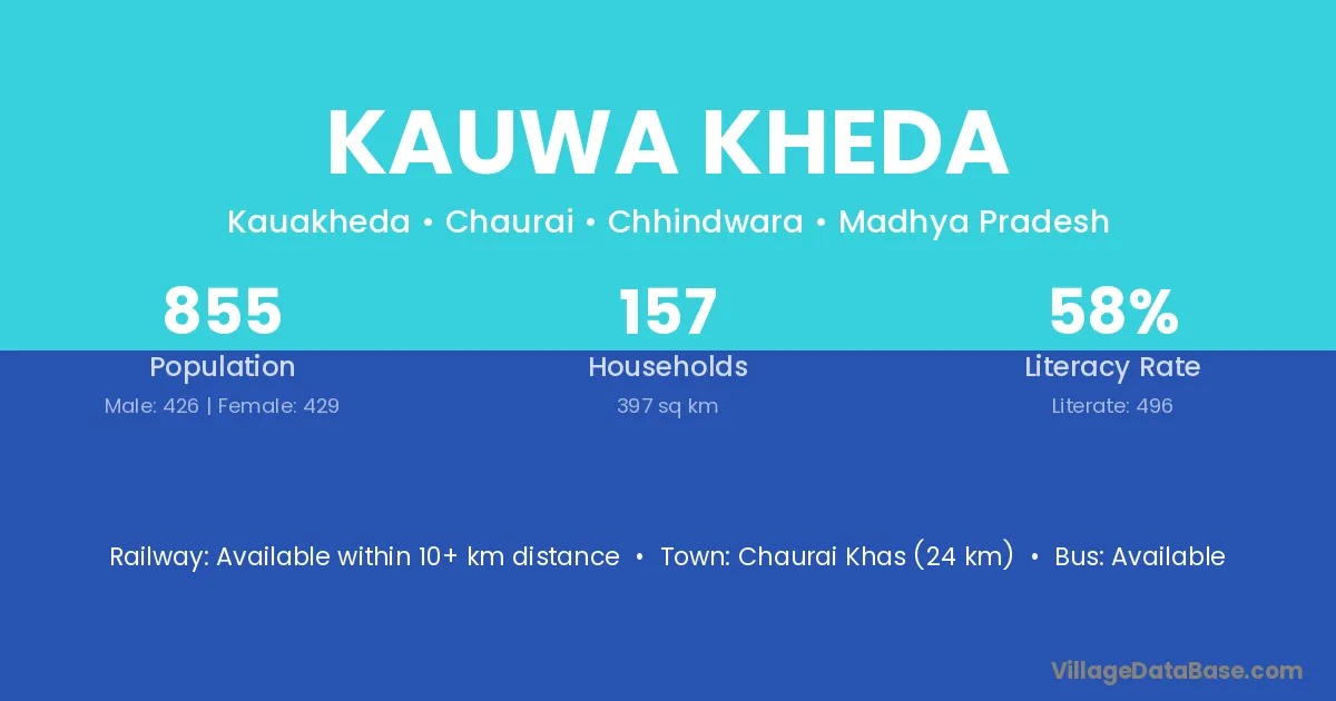Kauwa Kheda village has a total population of 855 people, of which 426 are males and 429 are females.