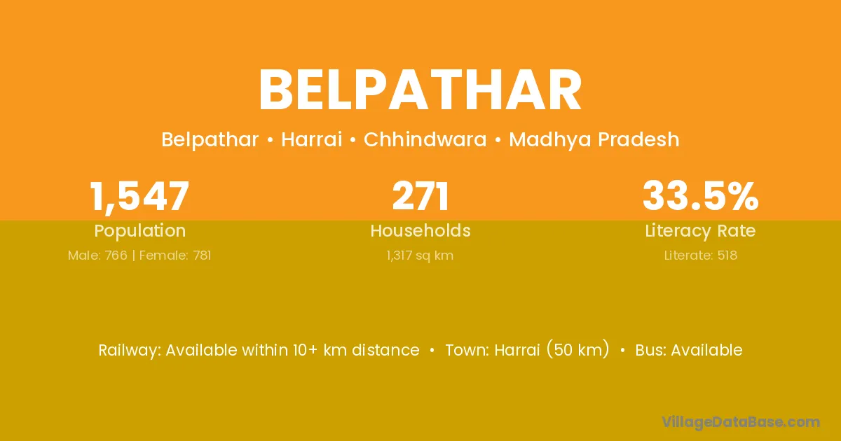 Harrai (50 km) is the nearest town to Belpathar village for major economic activities and is located approximately 50 km away.