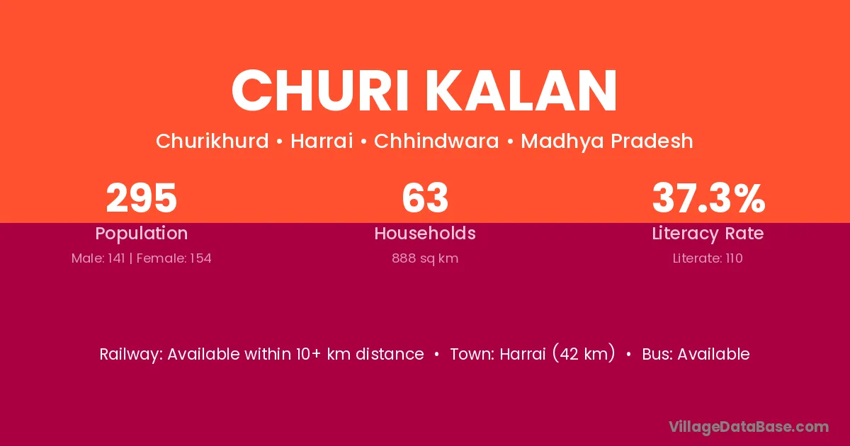 Churi Kalan village has a total population of 295 people, of which 141 are males and 154 are females.