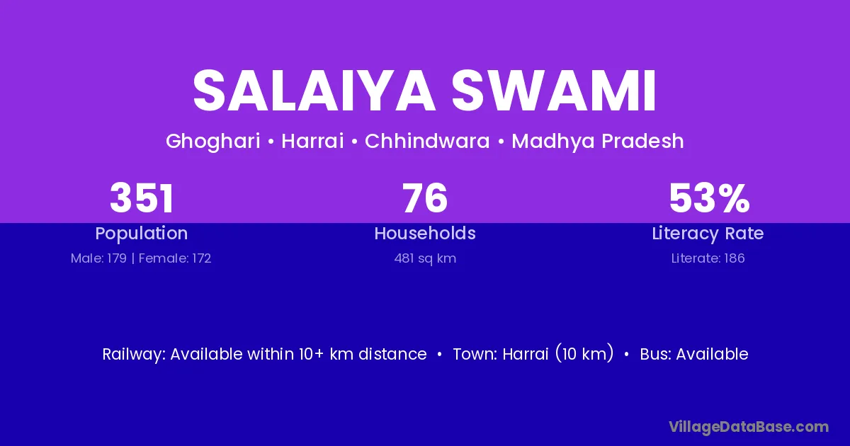 Harrai (10 km) is the nearest town to Salaiya Swami village for major economic activities and is located approximately 10 km away.
