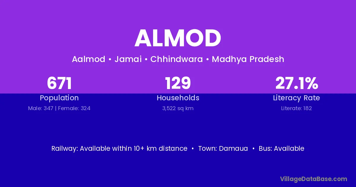 Almod village has a total population of 671 people, of which 347 are males and 324 are females.