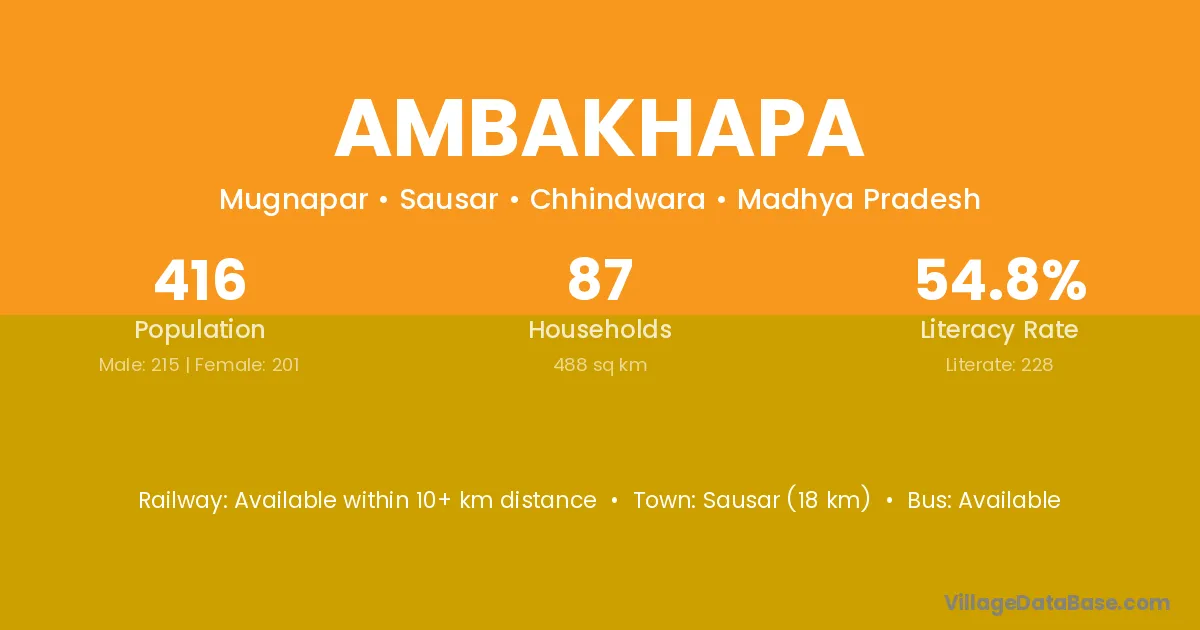Pandhurna (4 km) is the nearest town to Ambakhapa village for major economic activities and is located approximately 4 km away.
