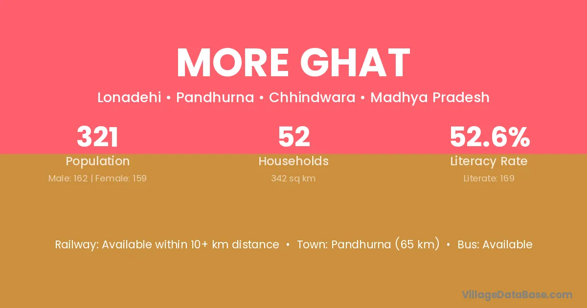 More Ghat village has a total population of 321 people, of which 162 are males and 159 are females.