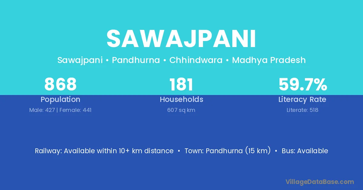 Pandhurna (15 km) is the nearest town to Sawajpani village for major economic activities and is located approximately 15 km away.