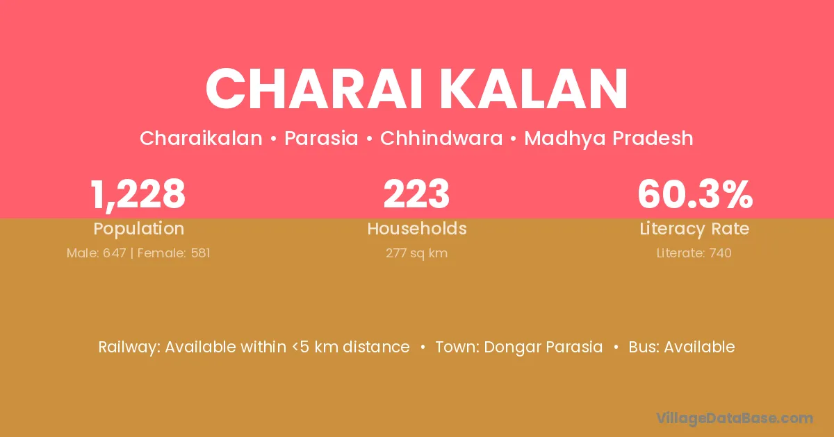 Dongar Parasia is the nearest town to Charai Kalan village for major economic activities