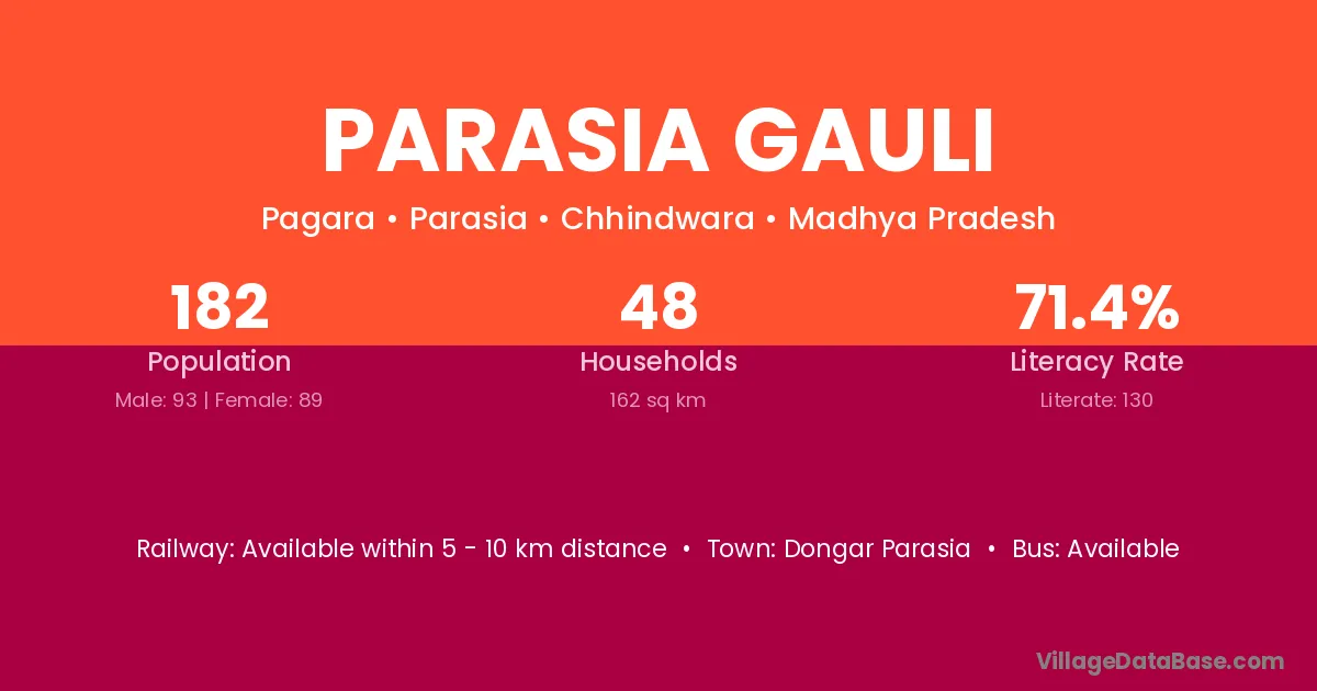 Parasia Gauli village has a total population of 182 people, of which 93 are males and 89 are females.