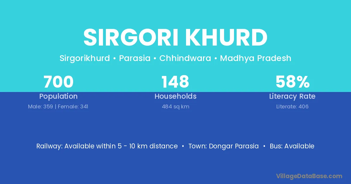 Sirgori Khurd village has a total population of 700 people, of which 359 are males and 341 are females.