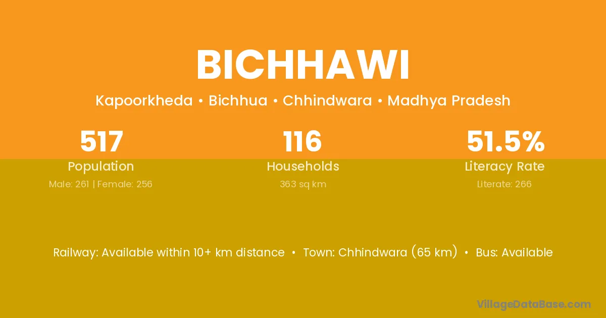 Sausar (10 km) is the nearest town to Bichhawi village for major economic activities and is located approximately 10 km away.