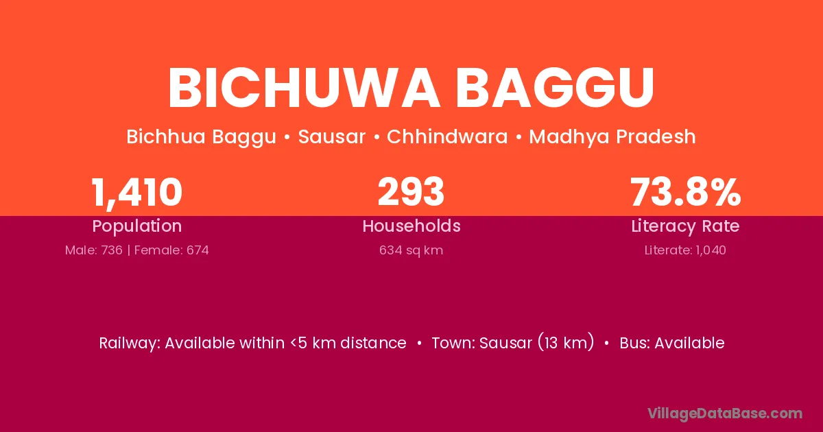 Sausar (13 km) is the nearest town to Bichuwa Baggu village for major economic activities and is located approximately 13 km away.