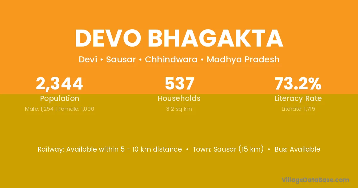 Sausar (15 km) is the nearest town to Devo Bhagakta village for major economic activities and is located approximately 15 km away.