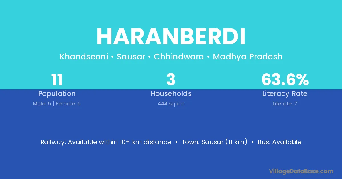 Sausar (11 km) is the nearest town to Haranberdi village for major economic activities and is located approximately 11 km away.