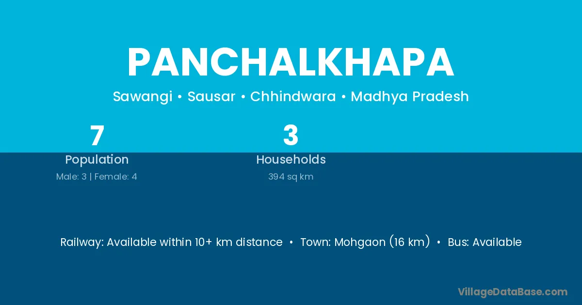 Mohgaon (16 km) is the nearest town to Panchalkhapa village for major economic activities and is located approximately 16 km away.