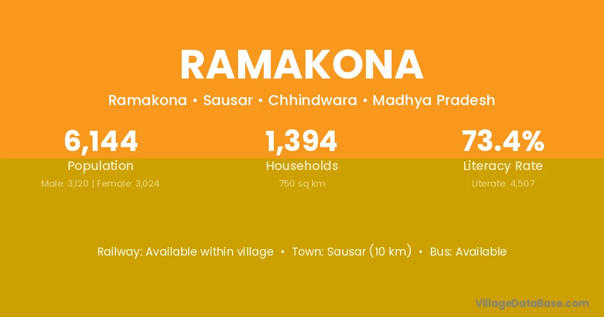 Ramakona village has a total population of 6,144 people, of which 3,120 are males and 3,024 are females.