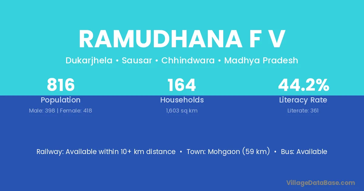 Mohgaon (59 km) is the nearest town to Ramudhana F V village for major economic activities and is located approximately 59 km away.