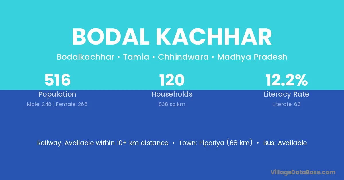 Bodal Kachhar village has a total population of 516 people, of which 248 are males and 268 are females.
