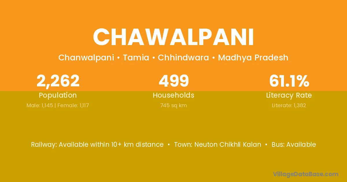 Neuton Chikhli Kalan is the nearest town to Chawalpani village for major economic activities