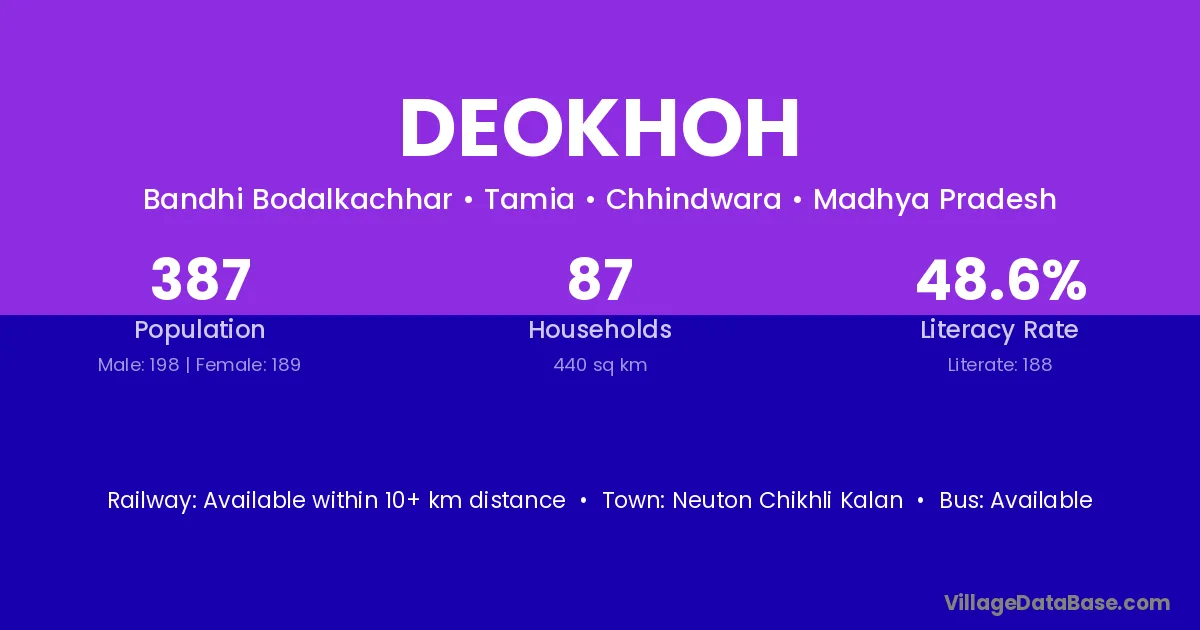 Neuton Chikhli Kalan is the nearest town to Deokhoh village for major economic activities
