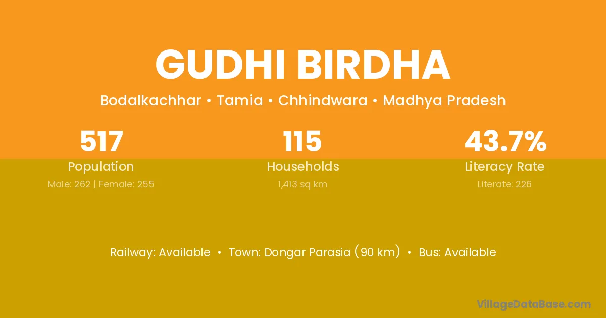 Gudhi Birdha village is located in the Tamia Tehsil of the Chhindwara district in Madhya Pradesh .