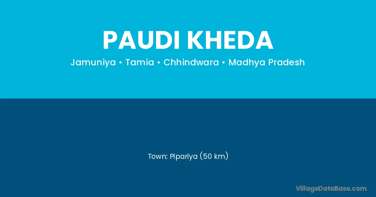 Pipariya (50 km) is the nearest town to Paudi Kheda village for major economic activities and is located approximately 50 km away.