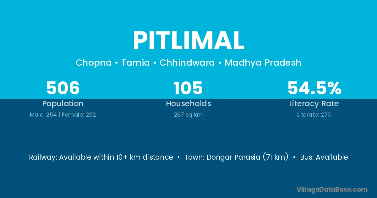 Pitlimal village has a total population of 506 people, of which 254 are males and 252 are females.