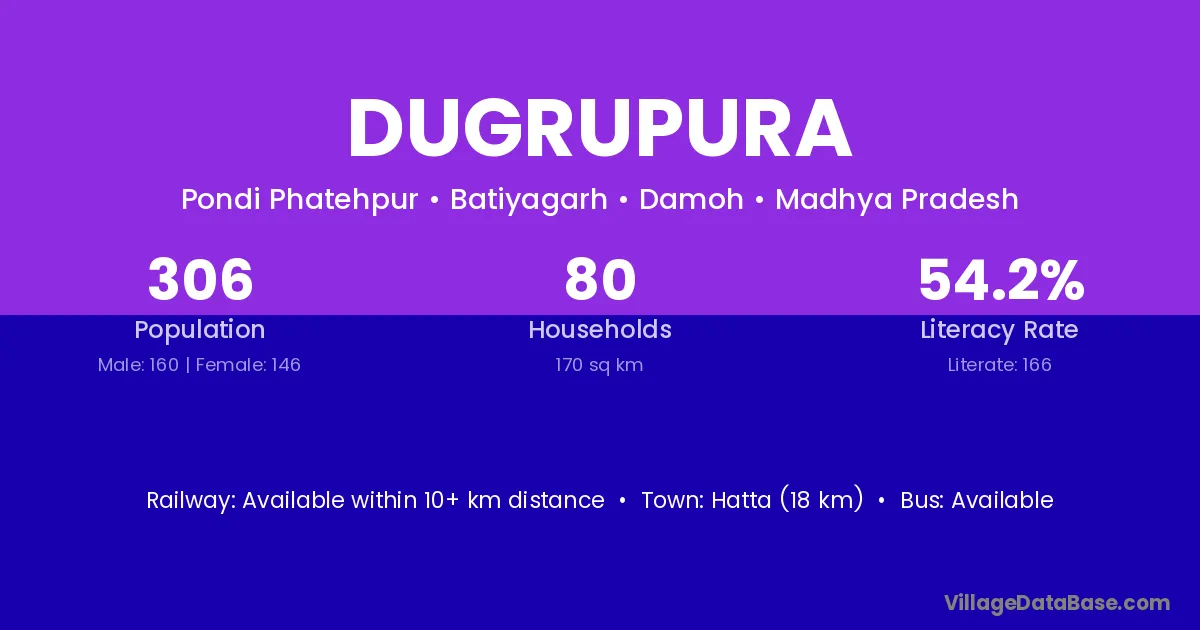 Hatta (18 km) is the nearest town to Dugrupura village for major economic activities and is located approximately 18 km away.