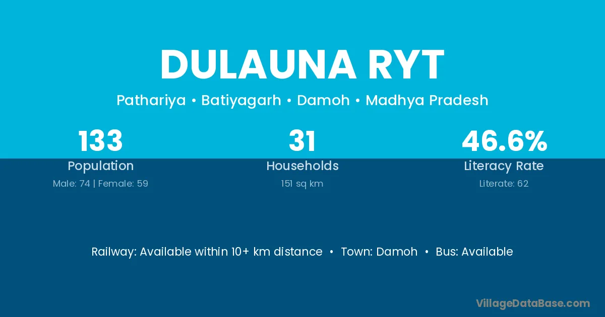 Damoh is the nearest town to Dulauna Ryt village for major economic activities