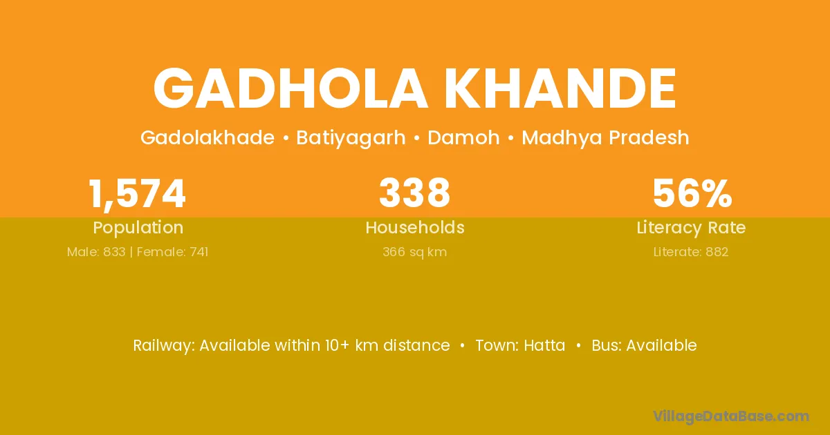Gadhola Khande village has a total population of 1,574 people, of which 833 are males and 741 are females.