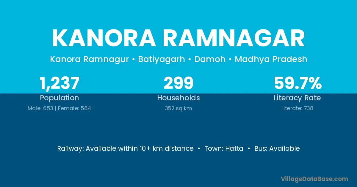 Kanora Ramnagar village has a total population of 1,237 people, of which 653 are males and 584 are females.