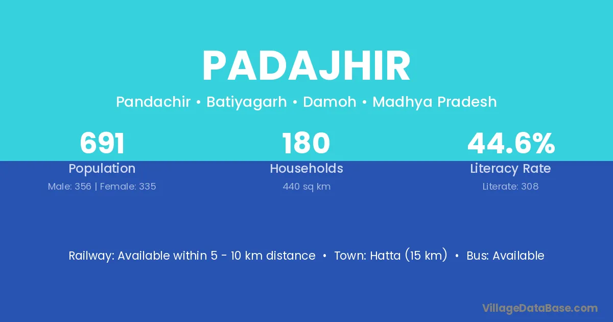 Hatta (15 km) is the nearest town to Padajhir village for major economic activities and is located approximately 15 km away.