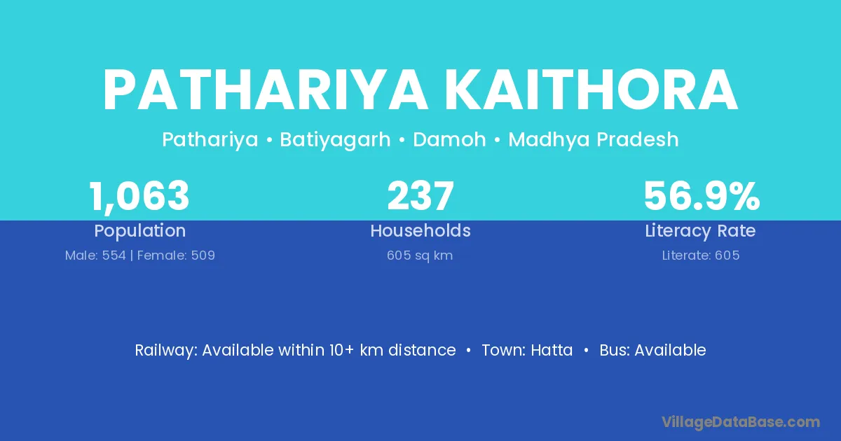 Pathariya Kaithora village has a total population of 1,063 people, of which 554 are males and 509 are females.