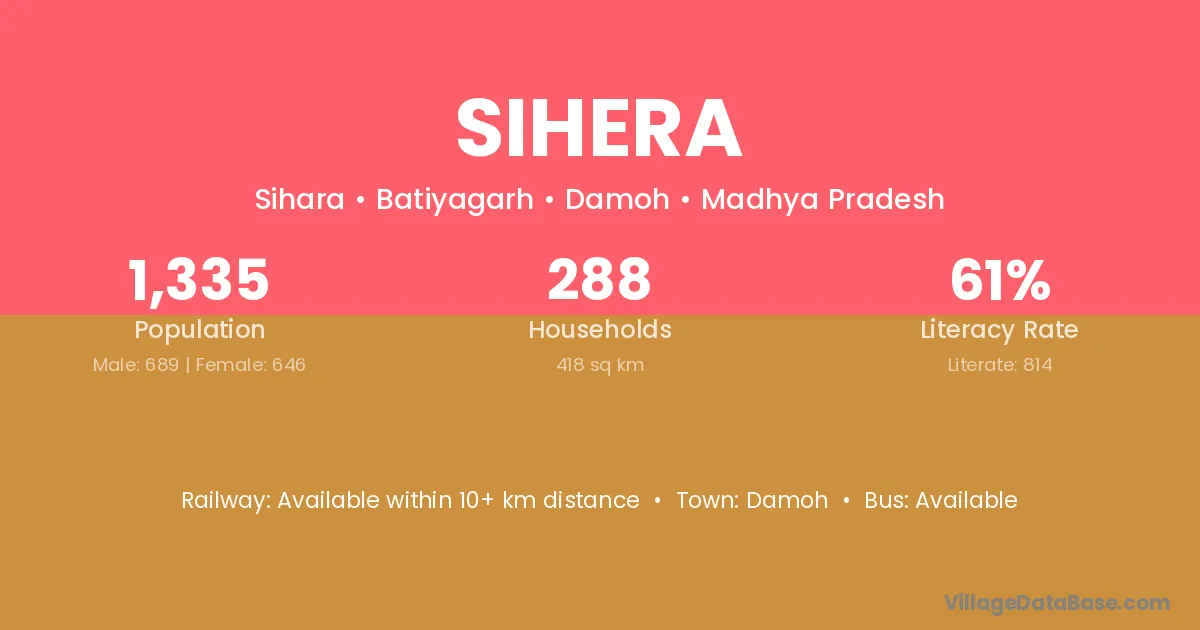 Sihera village has a total population of 1,335 people, of which 689 are males and 646 are females.
