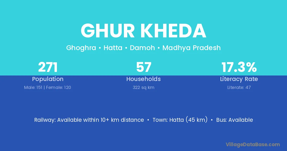 Ghur Kheda village has a total population of 271 people, of which 151 are males and 120 are females.