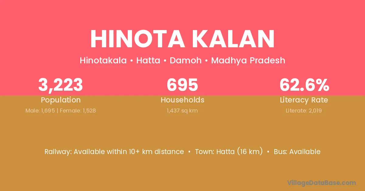 Hatta (16 km) is the nearest town to Hinota Kalan village for major economic activities and is located approximately 16 km away.